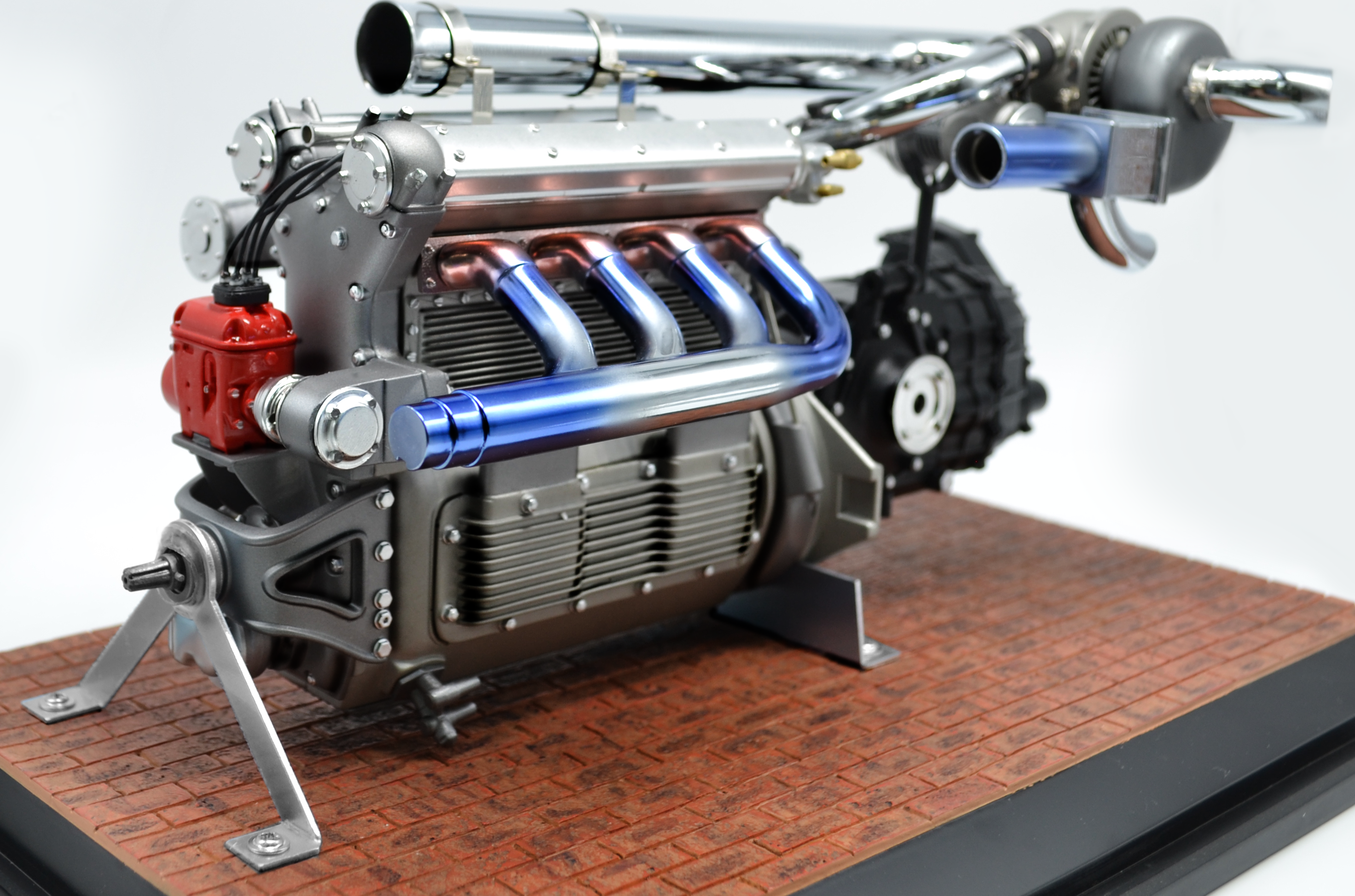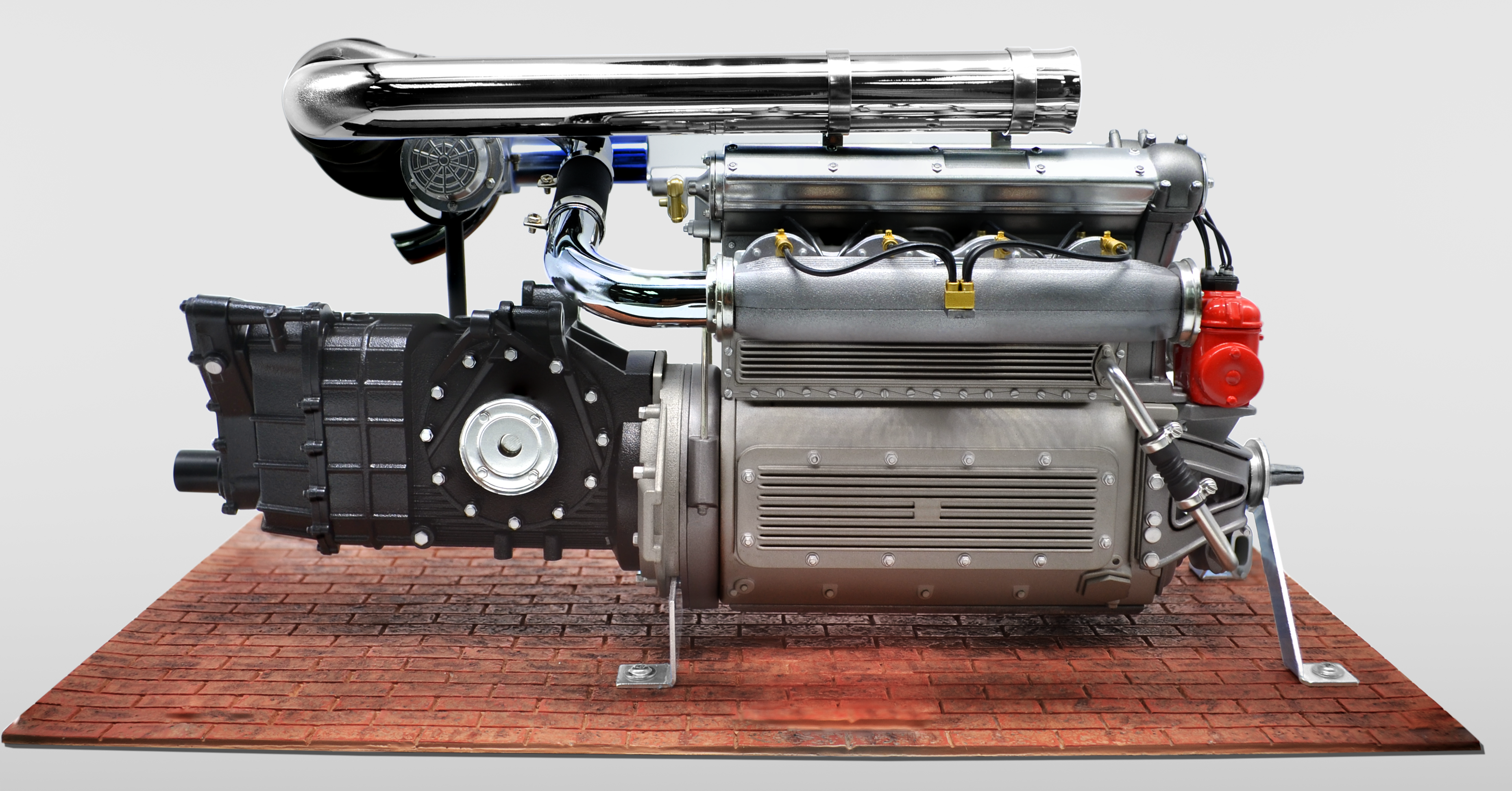 This is a limited edition GMP 1:6 scale diecast model of a 189 cubic inch Offenhauser “Offy” Turbocharged racing engine and gearbox. The model is approximately 6.5 inches long, 4.5 inches wide, and weighs about 5 pounds. It includes a display plaque and a base measuring 7 inches by 9 inches with felt pads. The “Offy” engine, known for dominating open-wheel racing for nearly 50 years, could produce over 1000 horsepower with turbocharging. Despite Ford’s entry into the scene in 1963, the Offy remained competitive until the mid-1970s. The last Championship win for the Offy was in 1978 at Trenton in Gordon Johncock’s Wildcat race car. This collectible model, requiring light assembly, makes a splendid decorative piece for a desk or man cave.