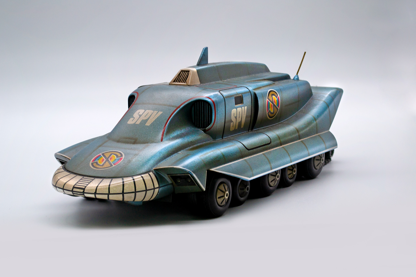 The SPV, or Spectrum Pursuit Vehicle, was produced by Drumwell for one of our clients, Sixteen12, in 2005. Originally debuting in Gerry Anderson’s iconic Captain Scarlet TV series in 1967, this die-cast model pays homage to the beloved show that captivated fans across 32 thrilling episodes.