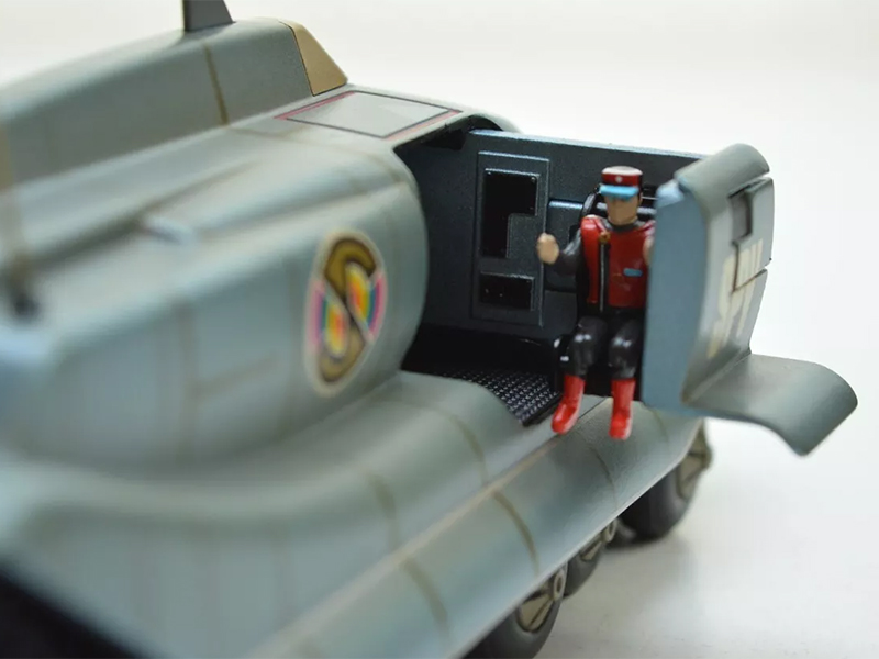 An added feature is included as a small compartment on the side, housing a detailed scale figure of Captain Scarlet himself, allowing fans to recreate their favorite scenes.